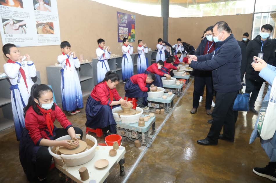 据悉,本次活动的主题是“生活实践教育与线上网络教学”。当天上午,参加论坛的200余名各市县区的教育局、教研室和教科所负责人和校长先后观摩了线上线下同步生活实践教育微课、屈家岭实验小学学生生活实践教育课、五三高中学生瓷板画创作现场、学生制陶和陶笛表演。在屈家岭遗址博物馆,全体人员一边聆听16名学生讲解员的精彩讲解,一边感受屈家岭文化的独特魅力,并随后赴屈家岭一中观摩了学生们的木工、模具、插花、贴画等室外生活实践活动。