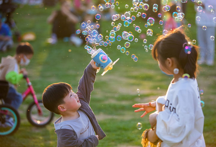 5月3日,市民在安徽省淮北市郊外公园游玩。新华社发(王文摄)