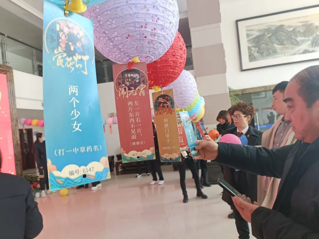 “猜灯谜”是中华民族独有的一种文娱形式,是中国人民的智慧结晶。活动现场气氛十分热烈,一个个五颜六色的灯笼挂满大厅,一条条有趣的谜语引起了大家的浓厚兴趣,有的紧锁眉头默默沉思,有的三五成群互相探讨,大家绞尽脑汁、集思广益、踊跃猜谜,现场笑声不断,热闹非凡。