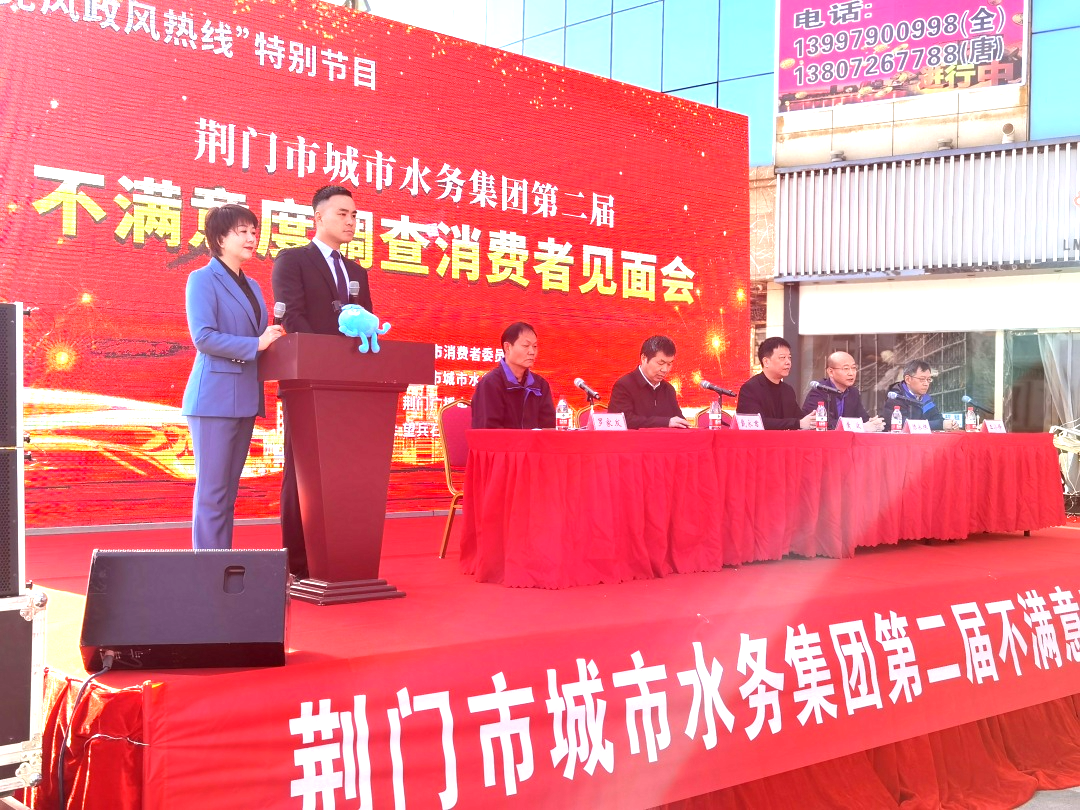 为进一步提升供水服务质量,更好的维护消费者合法权益,3月13日上午,市水务集团第二届不满意度调查消费者见面会在掇刀区望兵石社区举行。此次活动由荆门市消委、荆门市城市水务集团主办,荆门广播电视台承办,参加的同志有市消委秘书长黄波、媒体监督员戴永君、市水务集团公司董事长陈永根、总经理王小锋及社区代表、现场观众近100人。现场活动由荆门市广播电视台党风政风热线在线实时直播,点击量近5万余次。