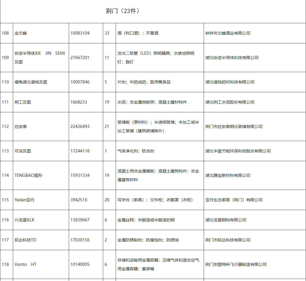近日,湖北省知识产权局发布《湖北省优势商标名录(第3批)》荆门市金文峰、尚香及图等23个商标荣列其中数量与十堰的并列仅次于武汉。
