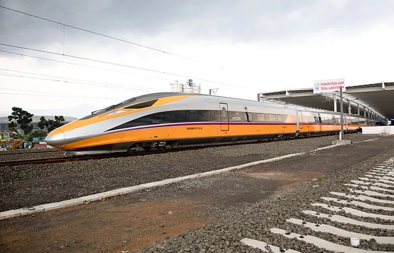 2022年11月16日,在印度尼西亚万隆,高速铁路综合检测车行驶在雅万高铁试验段。(图源:新华社)