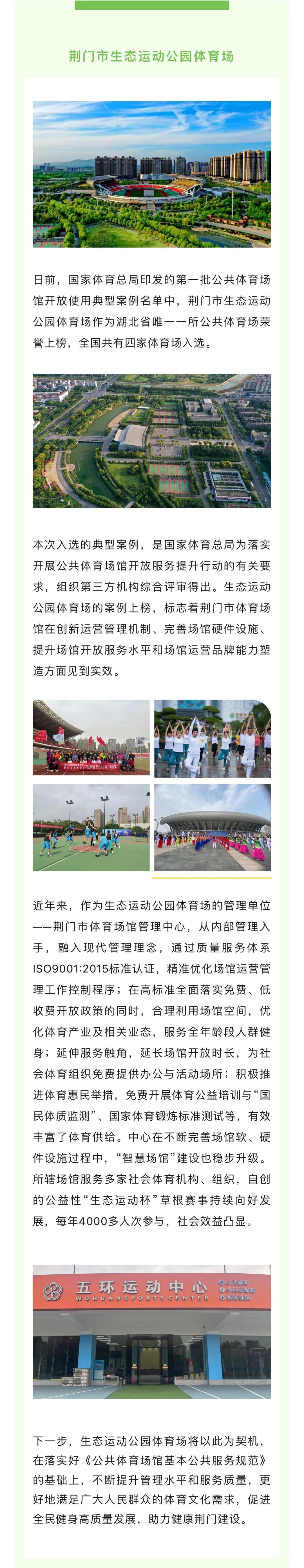 唯一上榜:荆门市生态运动公园体育场入选国家公共体育场馆开放使用典型案例