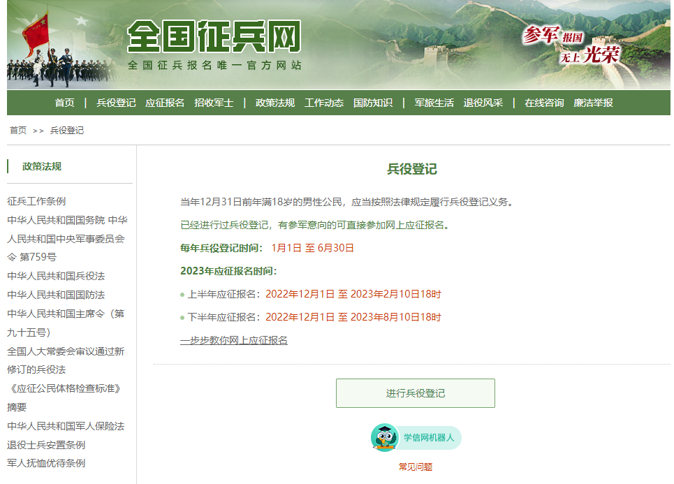 登录“全国征兵网”(https://www.gfbzb.gov.cn/)点击右侧“兵役登记(男兵)”,按要求真实、完整填写基本信息: