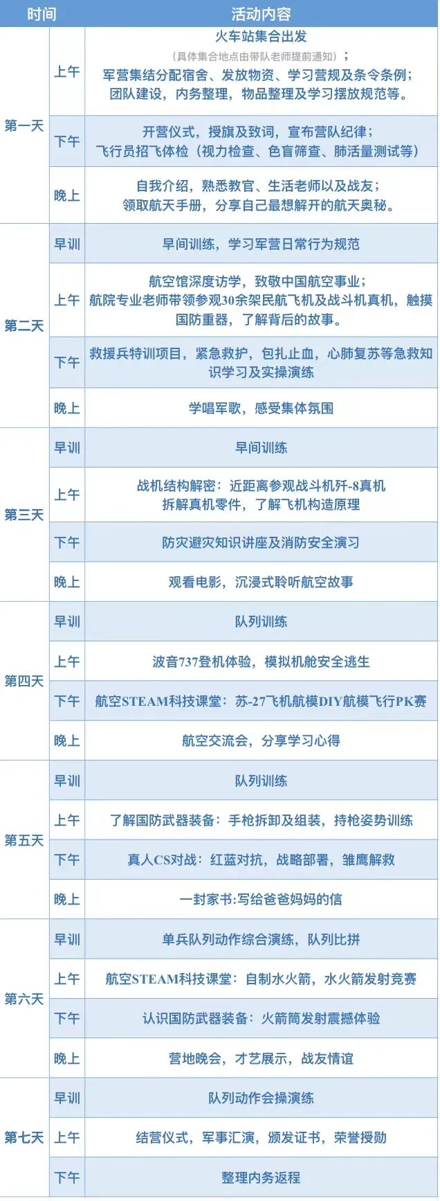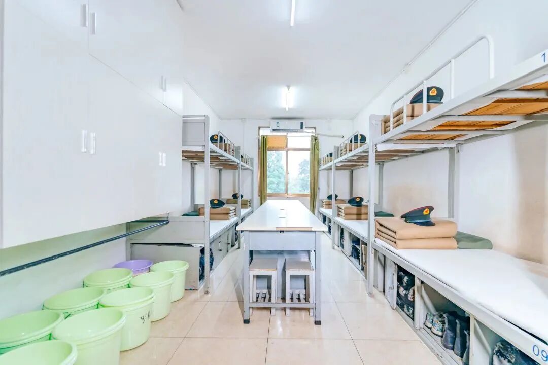 宿舍为部队标准化营房,八至十人间宿舍,男女分管,分房管理。食堂为部队餐饮专供食堂,军用食材供给,提供三餐+两点:牧场鲜奶直达,三餐航空自助餐不限量,下午水果加餐,晚上牛奶面包加餐,营养膳食,菜品多样,健康安全。