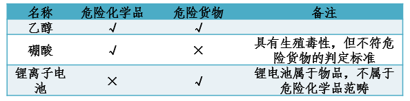 危险化学品分类原则中,许多危害健康和环境的慢性危害(例如致癌性、生殖毒性、生殖细胞致突变型)未被危险货物分类标准采纳,因此部分危险化学品不属于危险货物,例如硼酸。