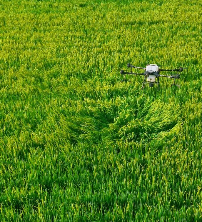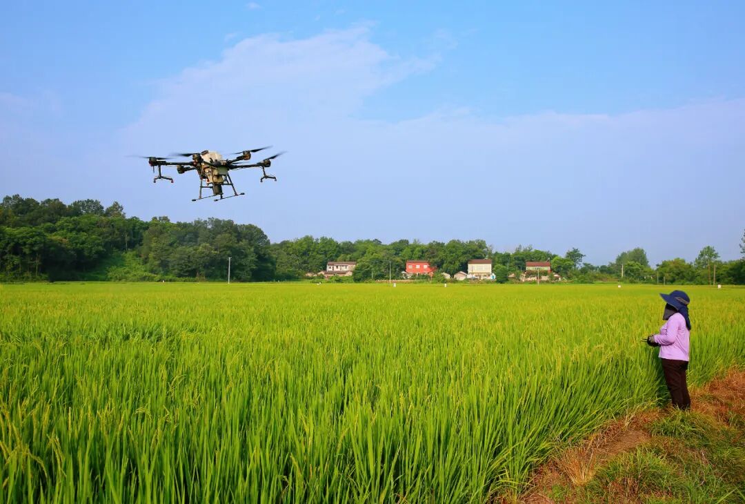 在飞防现场,“飞手”们利用植保无人机对稻田进行低空喷洒,并为村民们详细讲解植保无人机防治稻纵卷叶螟和稻飞虱的技术要点。