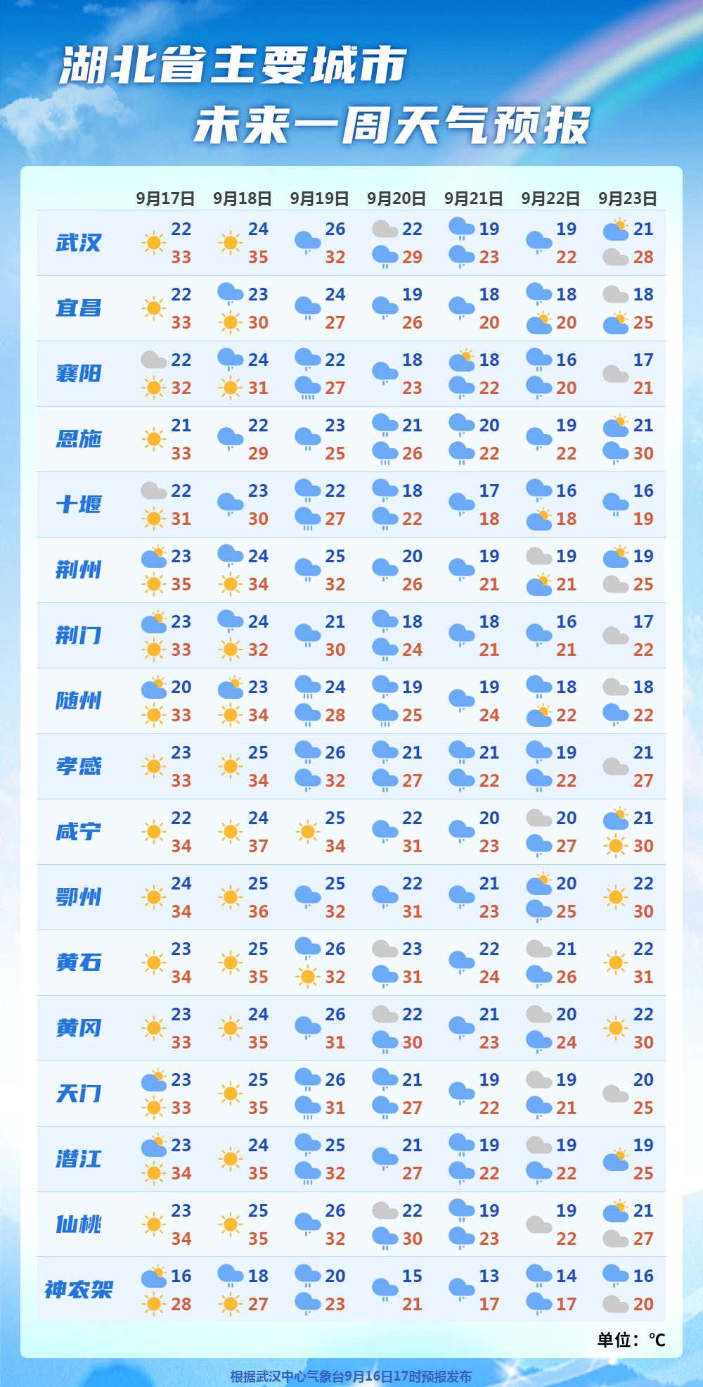 根据最新气象资料分析,预计9月18日—20日,湖北省将有明显降水过程,伴有短时强降水、雷暴大风、冰雹等强对流天气。其中,西部和北部大到暴雨、局部大暴雨。根据《湖北省气象灾害应急预案》相关规定,省气象灾害应急指挥部决定自9月18日12时启动气象灾害(暴雨)四级应急响应。