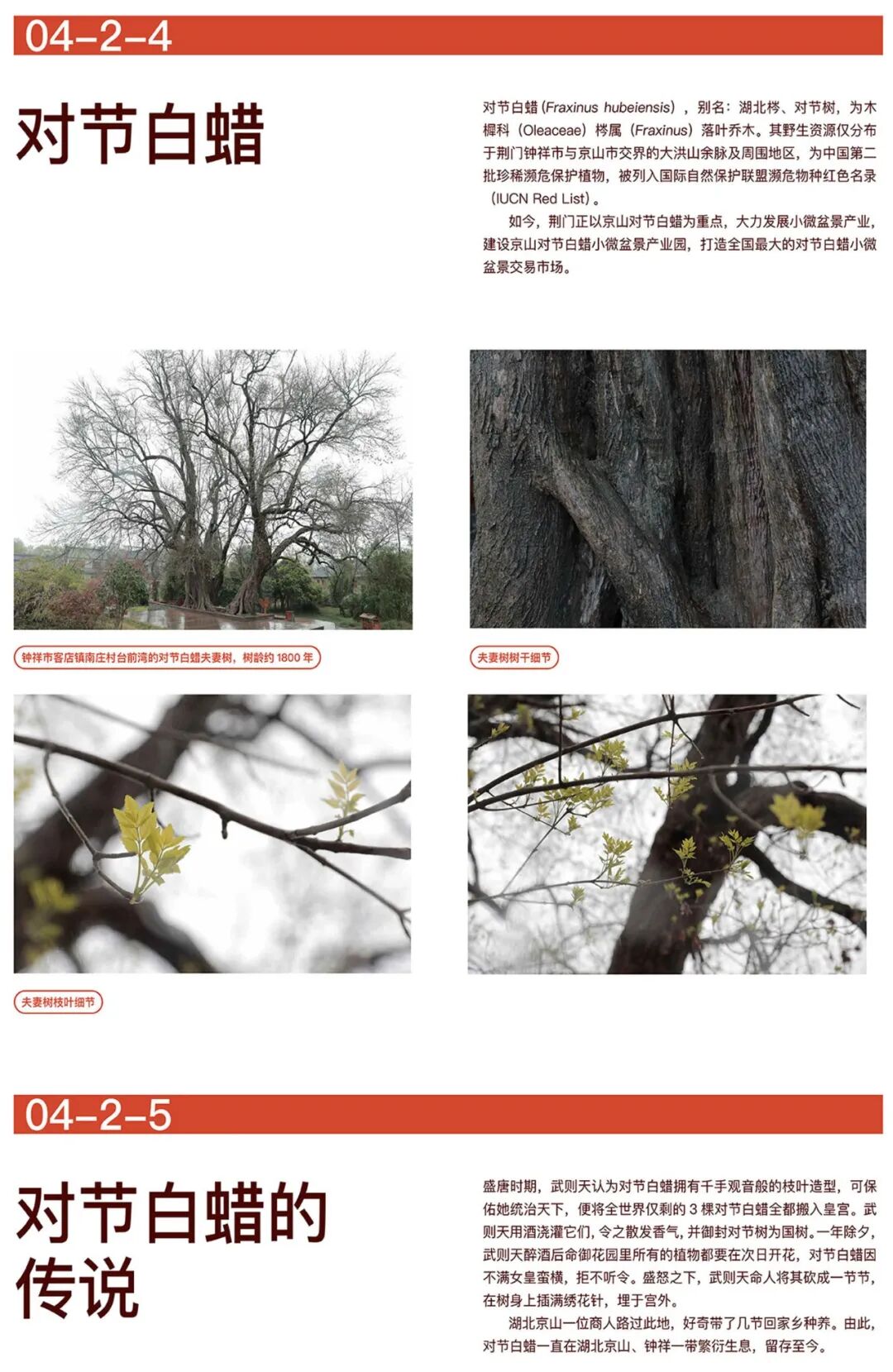 全市形成以香樟、对节白蜡、蝴蝶兰等100多个精品花卉苗木品种。沙洋正在打造“中国香樟第一县”;钟祥大柴湖蝴蝶兰、凤梨国内市场占有率40%以上;对节白蜡,别名“湖北白蜡”或“对节树”,是全球范围内仅湖北省特有的稀有名贵树种,被誉为“活化石”或“盆景之王”,远销国内20多个省份。