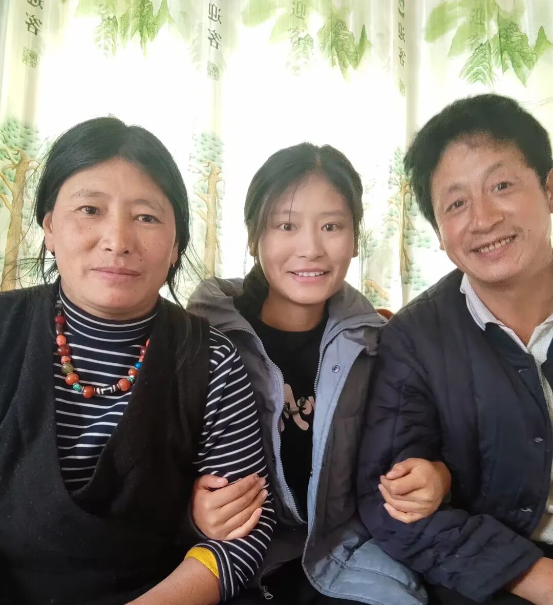 巴珍(中)和父母在一起。 昂秋 摄今年春节,在格当乡兴开村新居里,从武汉回家过年的巴珍和妈妈一起自酿墨脱黄酒,放酒的那一刻,隔壁左右都来家里做客,欢庆新年。