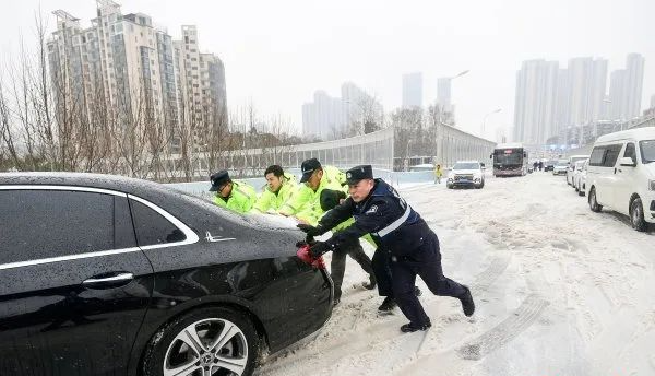 2月22日上午,受新一轮低温雨雪冰冻天气影响,武汉市汉阳区江城大道墨水湖大桥由南向北上桥路段及月湖桥上桥处积雪结冰,过往车辆通行受阻。汉阳区交通大队组织民辅警全员上阵,通过推车、拖车等多措并举帮助车辆脱困。道路沿线的汉阳区民政局、汉阳区城管委、晴川街道办、月湖派出所等单位也自发组成志愿者突击队,纷纷上路帮助受困车辆和群众,大家齐心协力保障交通平安通畅。