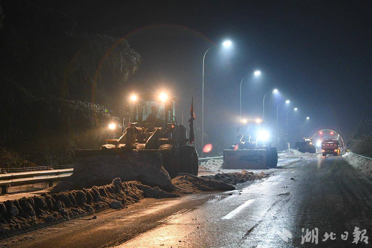 连日低温雨雪冰冻天气,造成咸宁境内高速公路出现堵点,当地迅速组织铲冰雪保畅通战役。其中,武深高速冰雪歼灭战调度沿线嘉鱼、赤壁、崇阳、通城四县市,交通、公安等有关部门和高速公路管理、经营单位,投入近300台铲冰融雪设备,按照咸宁市指令,全市“一盘棋”作业,采取“先铲冰后撒盐”“先见黑再清底”“先保通后保畅”等方式攻城拔寨。清晨7时18分,后方指挥部通告,大数据显示,全境高速公路已无明显堵点。8时许,经过核实,前方报告,武深高速咸宁段双向车道打通。