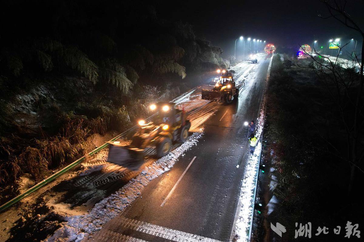 夜幕下,武深高速咸宁段紧急铲冰除雪。(通讯员 陈红菊 摄)