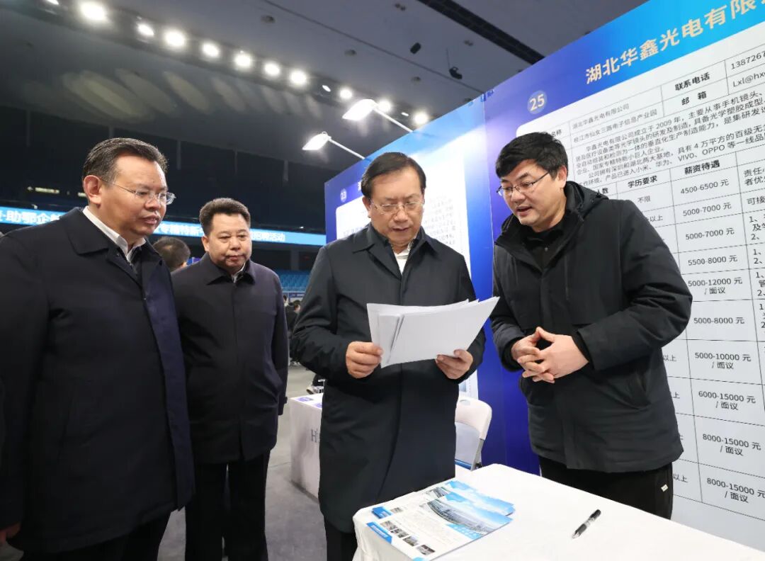 在洪山体育馆,“春暖荆楚 助鄂企航”保用工促发展暨专精特新中小企业招聘活动正在火热进行,120余家企业现场提供就业岗位超5000个。王忠林来到活动现场,听取全省就业工作情况汇报,通过视频连线了解襄阳市保用工促发展招聘活动情况,通过网络招聘直播间与省外求职者连线、欢迎大家到湖北就业创业,与现场招聘企业、求职人员互动交流。他强调,要大力加强人力资源市场建设,线上线下相结合,打造更多供需对接交流平台,提供可感可及有温度的就业服务;狠抓劳务品牌建设,提升“湖北人力”品牌美誉度影响力。