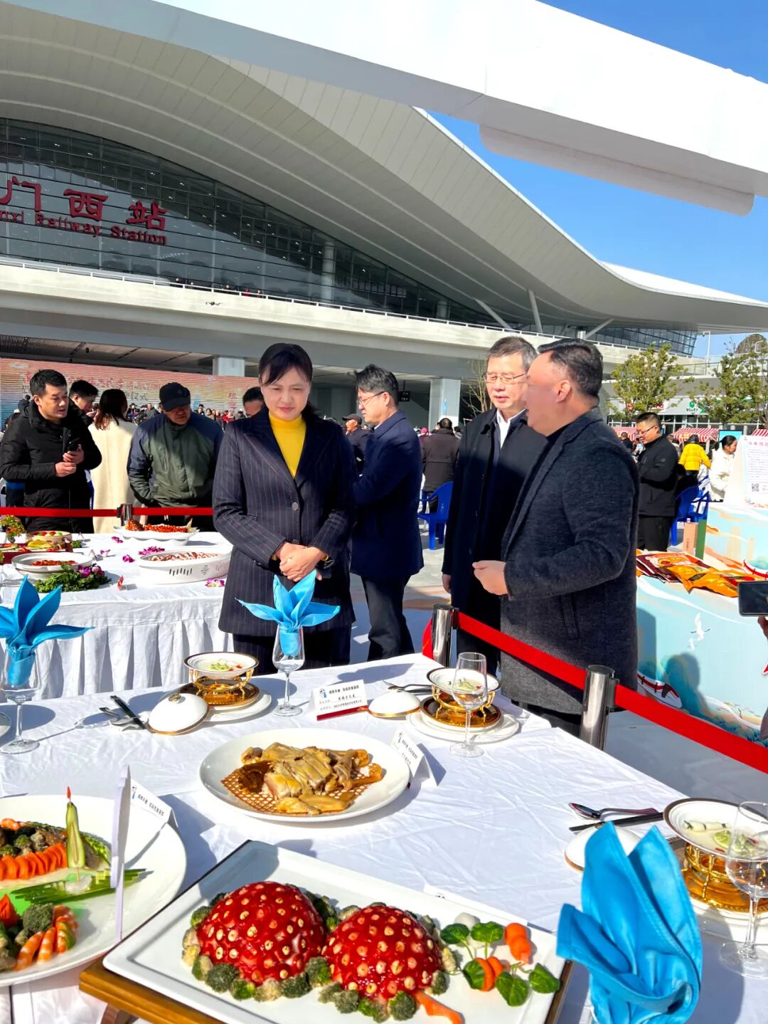 12月14至15日,伴随着“高铁来了”文商旅惠民季活动的启动,一场汇聚全市特色美食和网红商品的盛会——“厚道荆门 遇见高铁”2024荆门直播电商节在荆门西站站前广场拉开帷幕。副市长唐承凤出席活动。