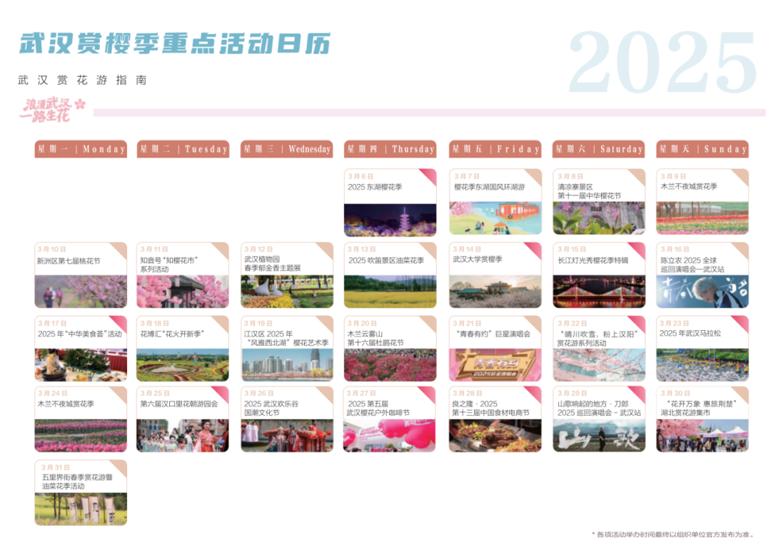武汉这座樱花之城栽种着超50万株樱花树几乎将全世界的樱花品种揽进怀中眼下正式进入樱花季“东湖樱舞”“珞樱缤纷”“晴川吹雪”……每一处都是樱花与城市风光的完美融合来武汉踏上浪漫的赏樱之旅去邂逅那满树繁花与无尽春光吧 小布为你奉上最全武汉赏樱攻略!