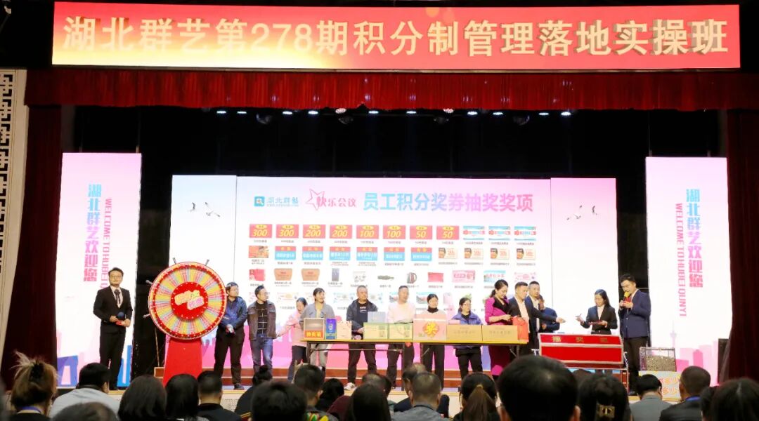 学习期间,所有学员参加了湖北群艺的员工快乐会议,亲身感受积分给员工带去的那份快乐。在快乐会议中,员工积分奖券竞拍和积分奖券抽奖环节,更是让所有学员感受到了积分给湖北群艺员工带去的那份喜悦。