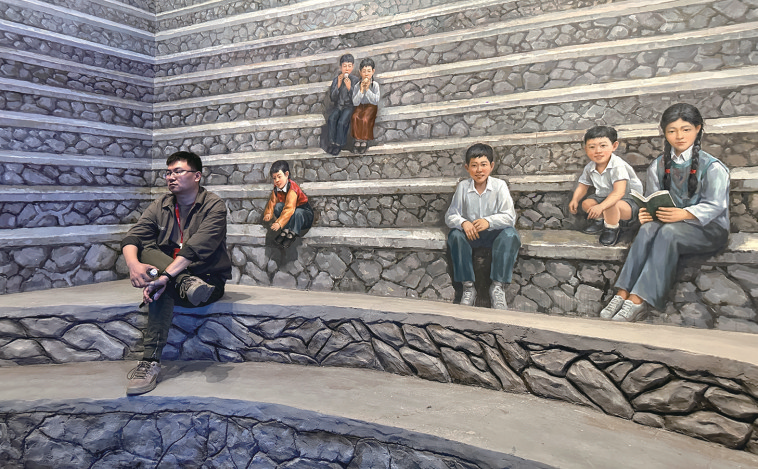 利用光影技术打造的“露天电影”展区。十堰日报社记者 张建波 摄