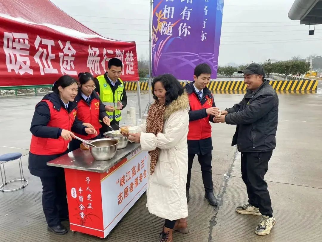 湖北交投宜昌高速公路运营管理有限公司“峡江高山兰”志愿服务队,2024年抗冰除雪期间,为滞留的过往司乘提供热水供应、免费餐饮、临时休憩等服务,并组织人员清理车道积雪,确保道路畅通无阻,服务司乘7210余人次;