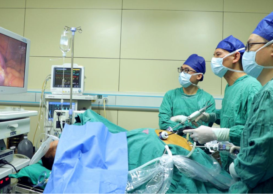 ▲荆门市人民医院东院区普外科(减重代谢中心)主任裴芝皆为“胖友”手术
