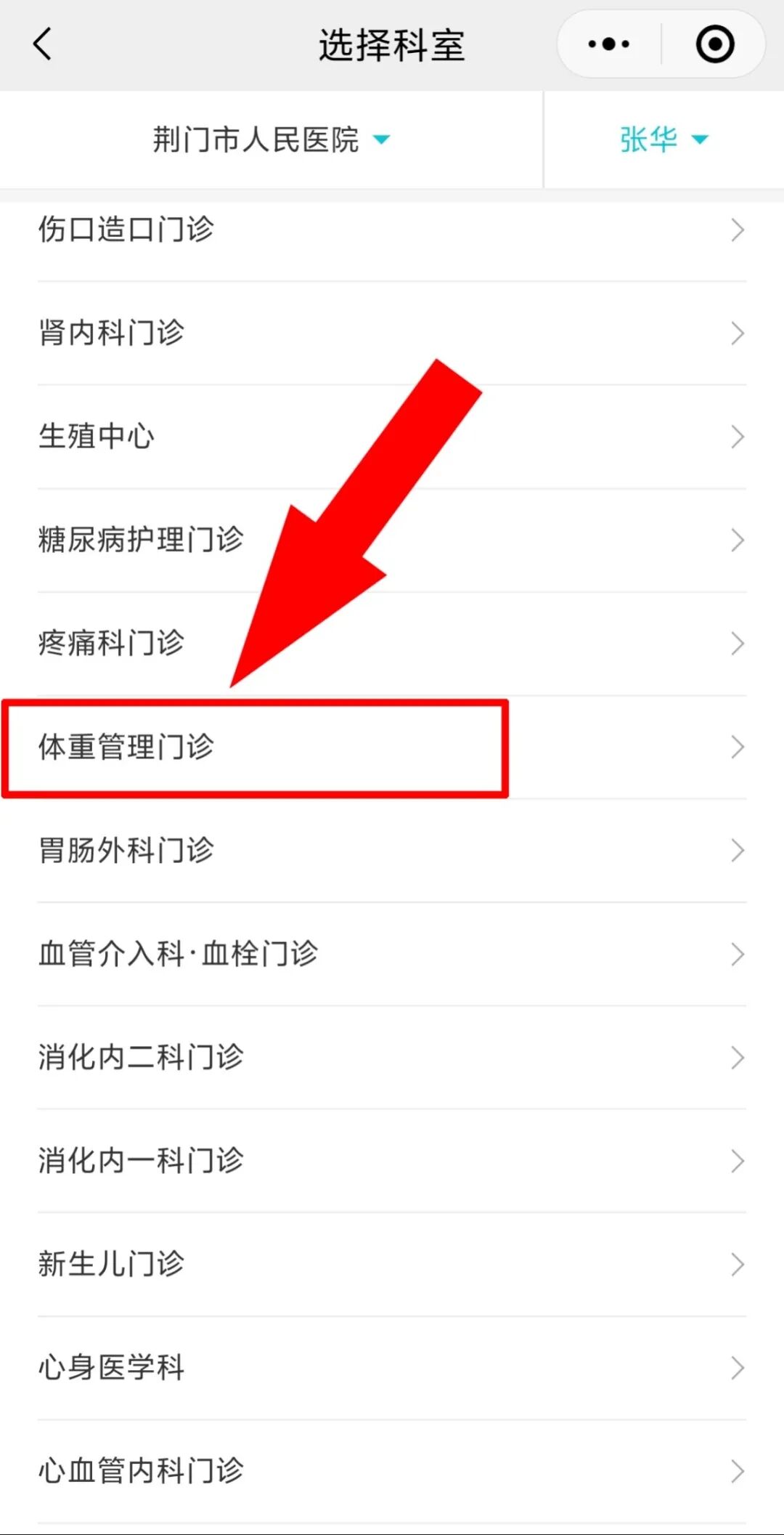 挂号/预约:到院人工窗口挂号或关注“荆门市人民医院”微信公众号→就医服务→互联网医院→挂号/预约→体重管理门诊