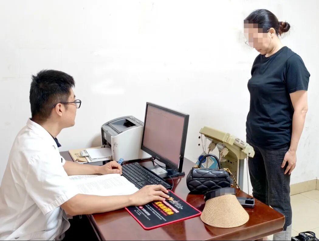 ▲中医康复科主任李强为患者进行“人体成份分析”