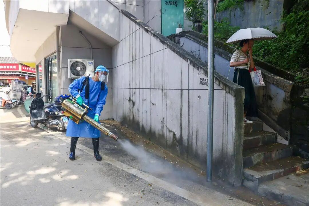 7月3日,咸丰县南门商城,防疫人员正在进行消杀。