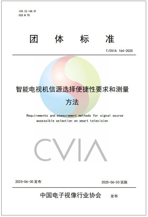 6月30日,由国家广播电视总局广播电视规划院会同中国电子技术标准化研究院、多家电视机厂商共同起草编制的团体标准《智能电视机信源选择便捷性要求和测量方法》,由中国电子视像行业协会正式向社会发布,并于同日实施。