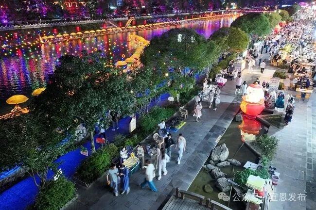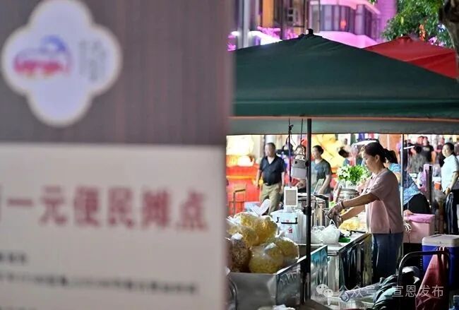 一元摊让群众有了更多的就业选择,而它带给宣恩这座城市的,不仅是更有序、更干净、更通畅的街巷,也有旅游县城丰富的夜间生活品质,更有获得民生满足后市民对城市的反哺:龙游贡水登船口附近的一元摊位常常成为游客的免费“行李寄存处”,大家自发成为旅游导览员、宣传员,为游客指路、帮宣恩宣传,一个个小小的生计,汇聚成宣恩夜游的大生机。