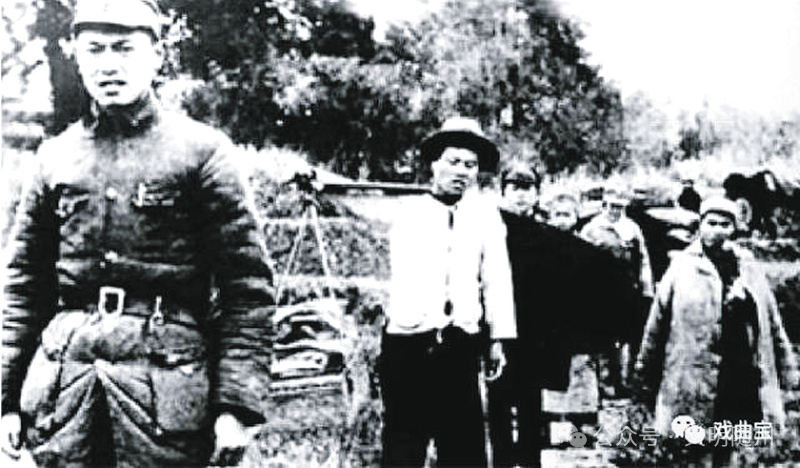 李先念(左一)在行军途中 资料图