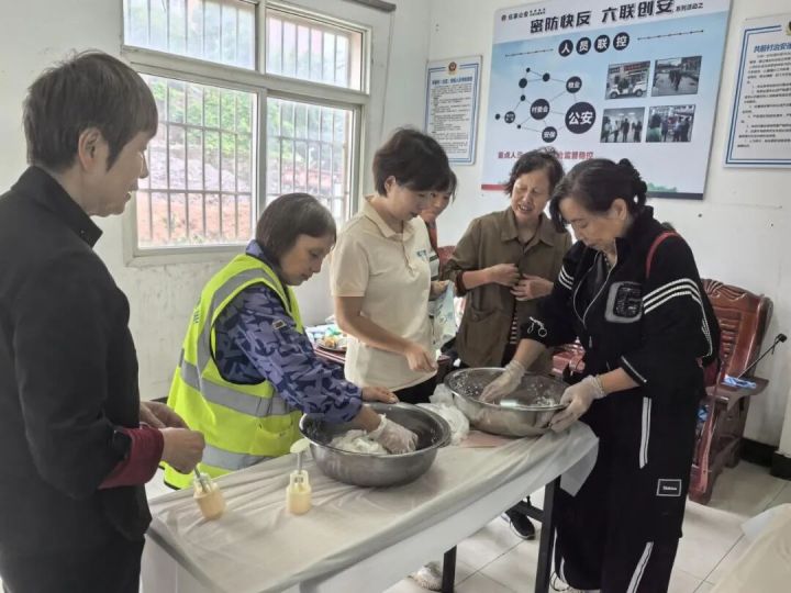 ▲李俊(中)和居民一起做月饼。通讯员 史敏 摄