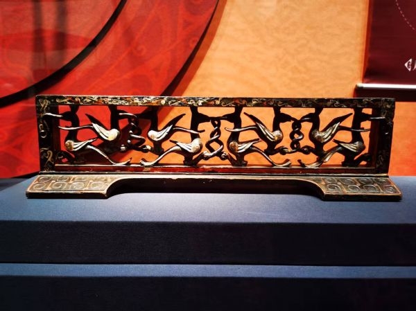 战国时期透雕凤鸟斗蛇瑟座(荆州博物馆藏)