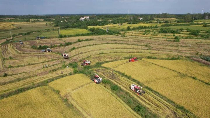 2025年9月,天门92.7万亩中稻陆续开镰。