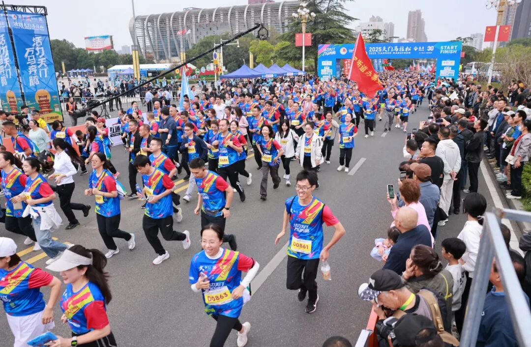10月12日,2025天门马拉松在陆羽广场鸣枪开赛。