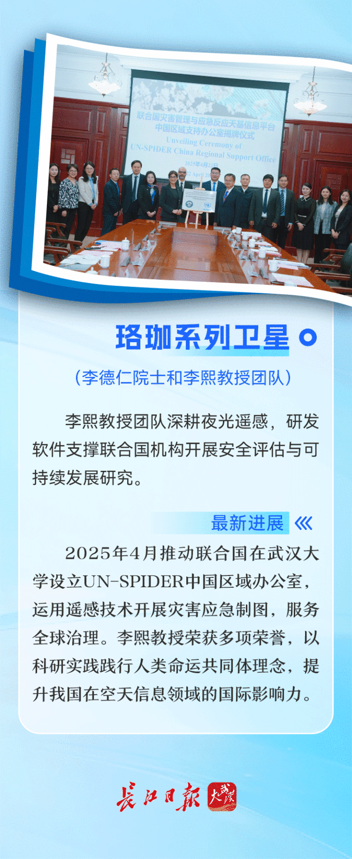 人类命运共同体理念指引着科技创新的应用方向。今年4月22日,武汉大学测绘遥感信息工程全国重点实验室李熙团队推动联合国外层空间事务司(UNOOSA)在武汉大学设立灾害管理与应急反应天基信息平台(UN-SPIDER)中国区域支持办公室。李熙教授作为该办公室的负责人,多次带领团队利用卫星遥感技术开展联合国框架下的灾害应急制图,为全球减灾贡献中国智慧与中国力量。