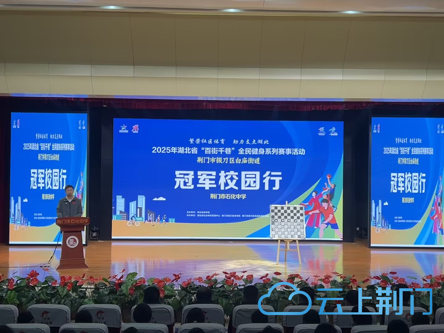 11月6日上午,国际跳棋冠军高文龙受邀走进荆门市石化中学,为全校师生带来了一场兼具励志感悟与运动风采的精彩活动。
