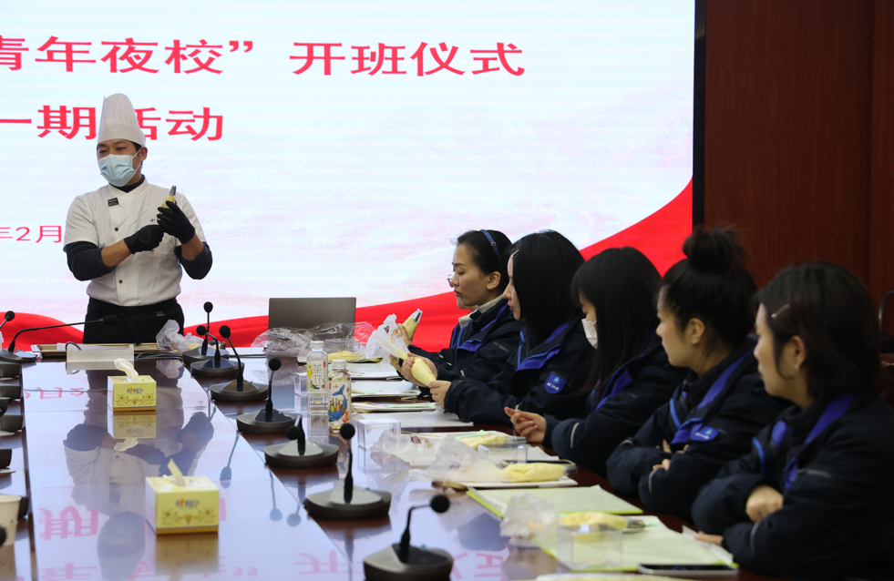 青年职工在老师指导下制作了曲奇饼干。图片来源:青春荆门