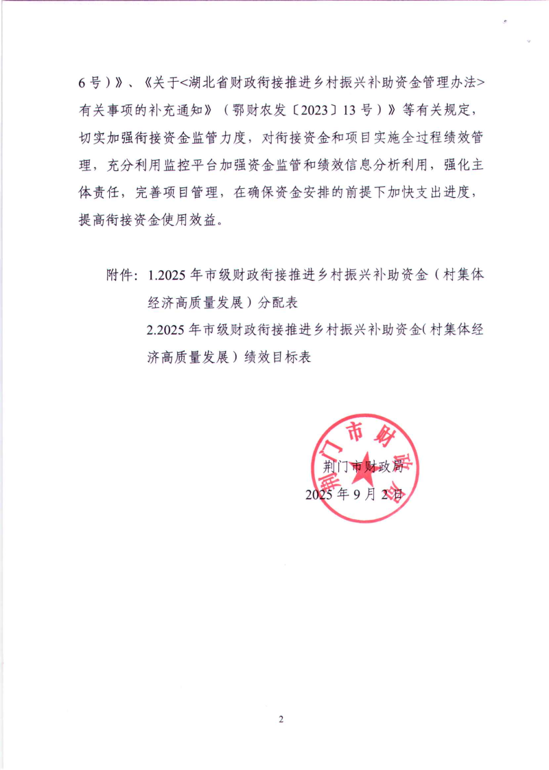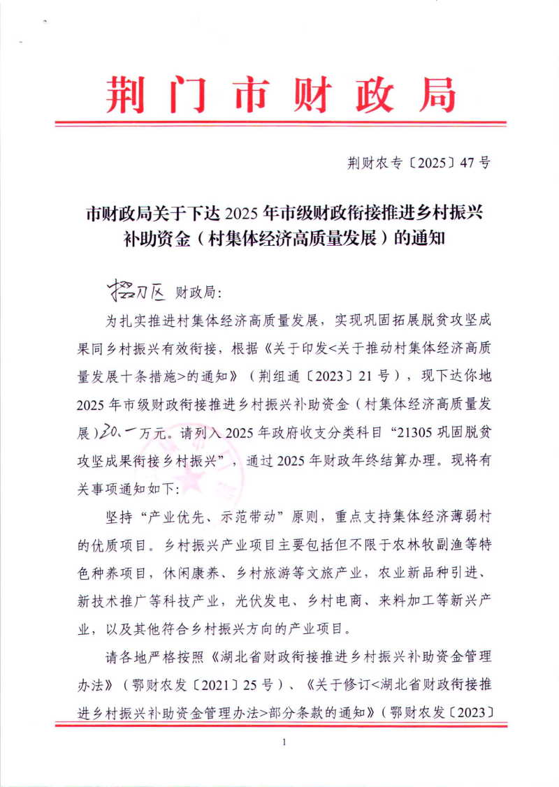 2025年市级衔接推进乡村振兴补助资金(村集体经济高质量发展) 20万