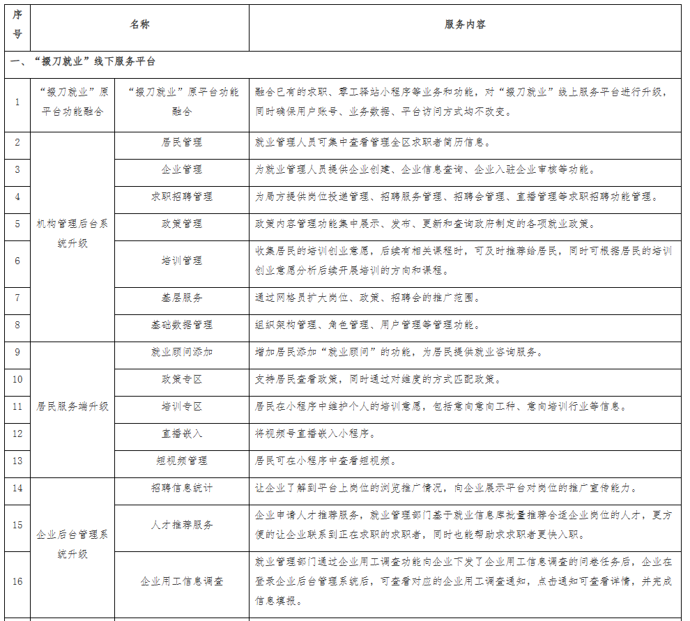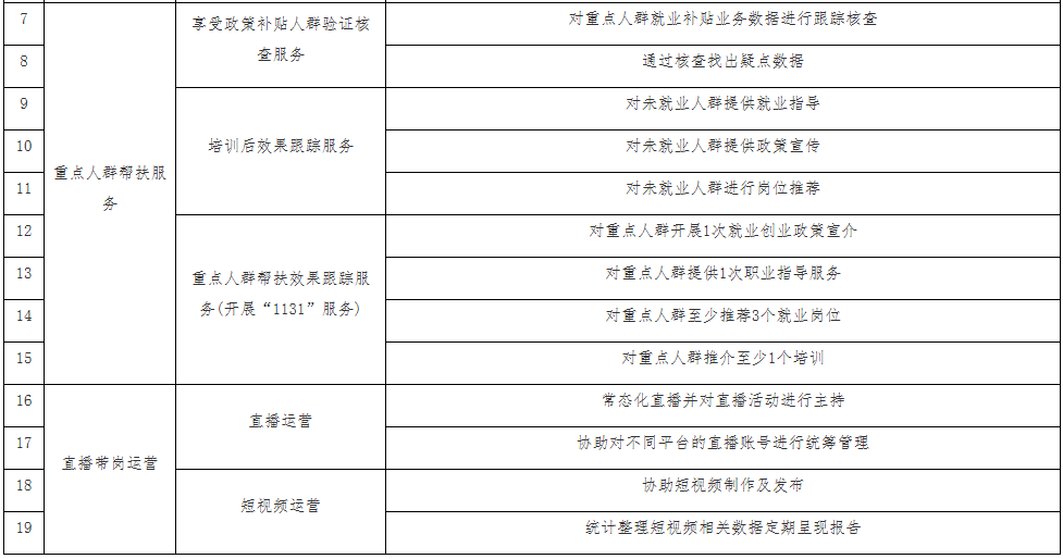 【政府购买服务】掇刀数化就业项目服务清单