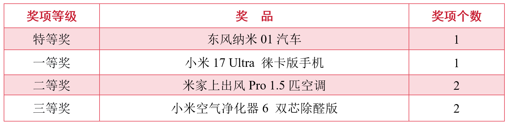 共设置8个等级奖项