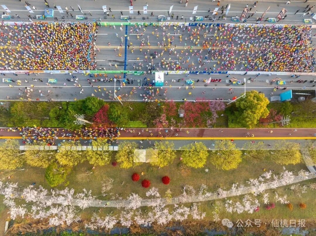 清晨,紧张、兴奋的人们如完成某种使命一般,从城市的各个角落汇聚到起点。轻快的脚步跑过沔州大道的宽阔、钱沟南路的烟火、彭场大道的活力,这种沉浸式的城市体验,任何宣传片、推介词都无法替代。