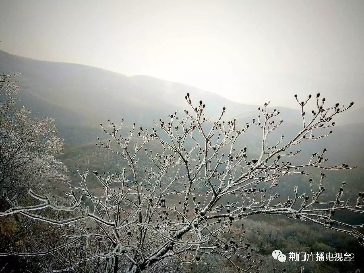 树枝上挂满了银白的冰霜,恰似朵朵“梨花”