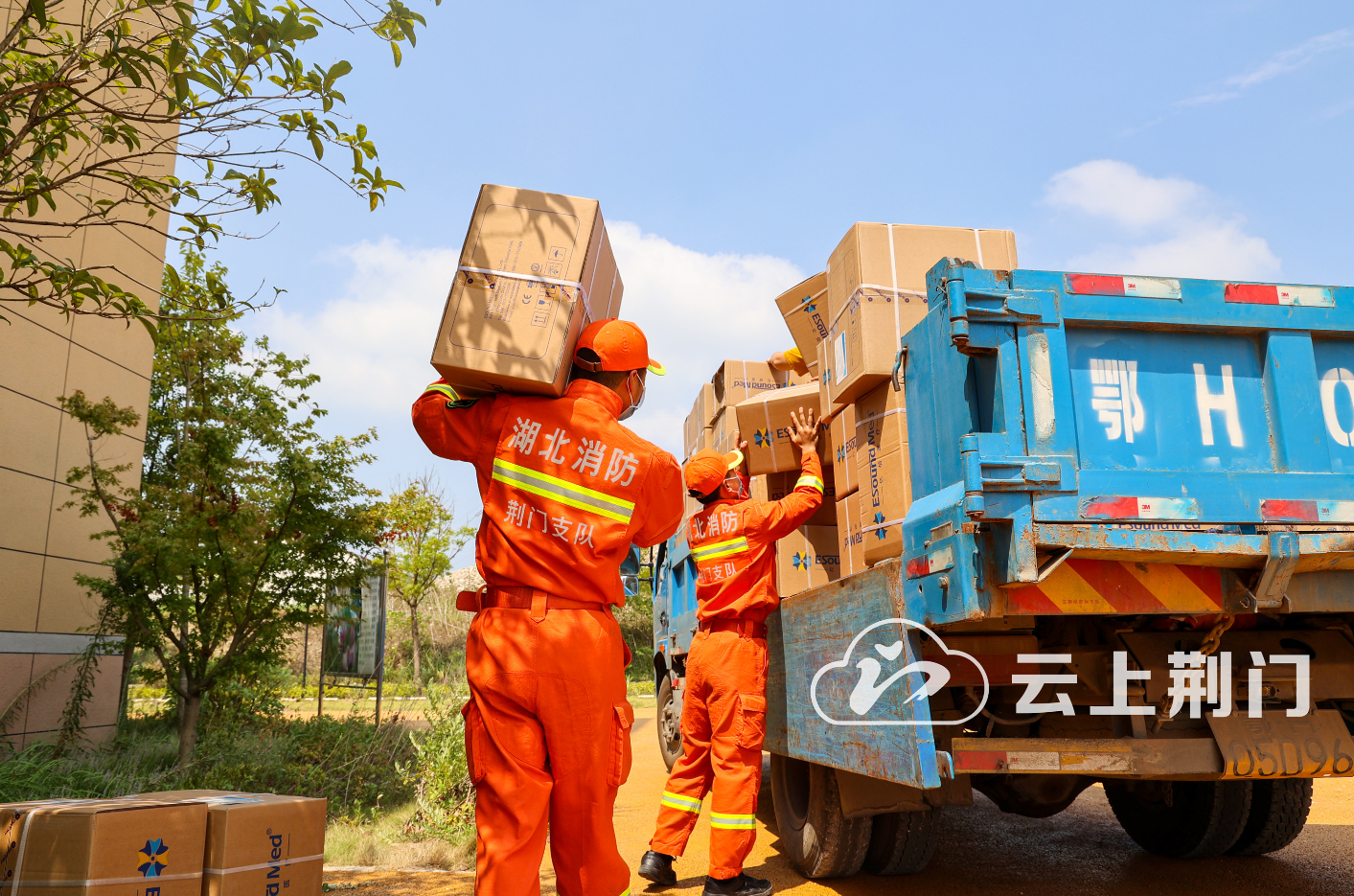 全力以赴 同心抗疫丨荆门消防紧急搬运防疫物资
