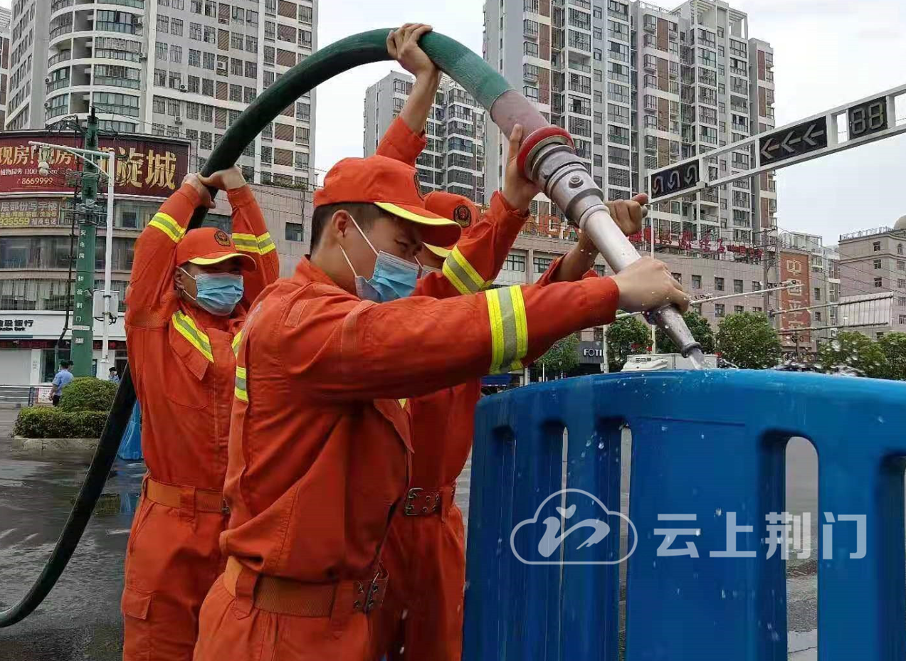 全力以赴 同心抗疫|荆门消防完成疫情前线水马注水工作