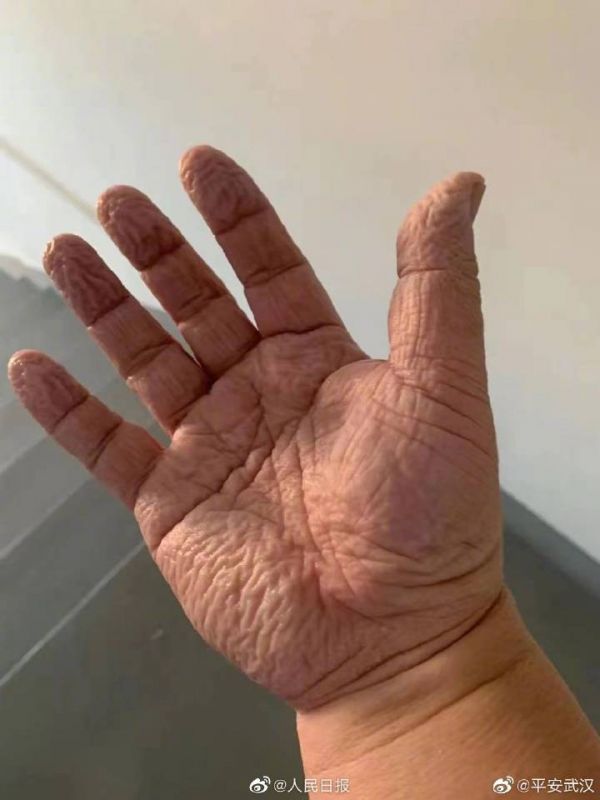 辛苦了!这是武汉抗疫一线民警泡皱的手